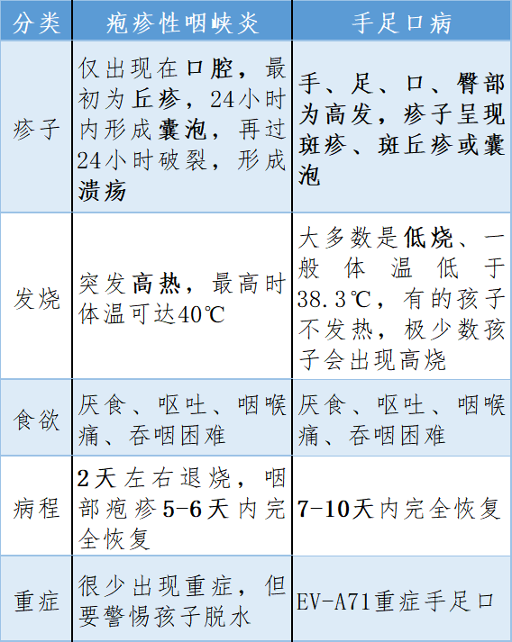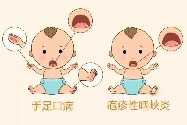 对比疱疹性咽峡炎和手足口病: