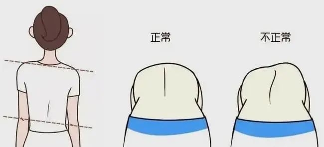 两侧肩膀不等高,肩胛骨不在同一平面;