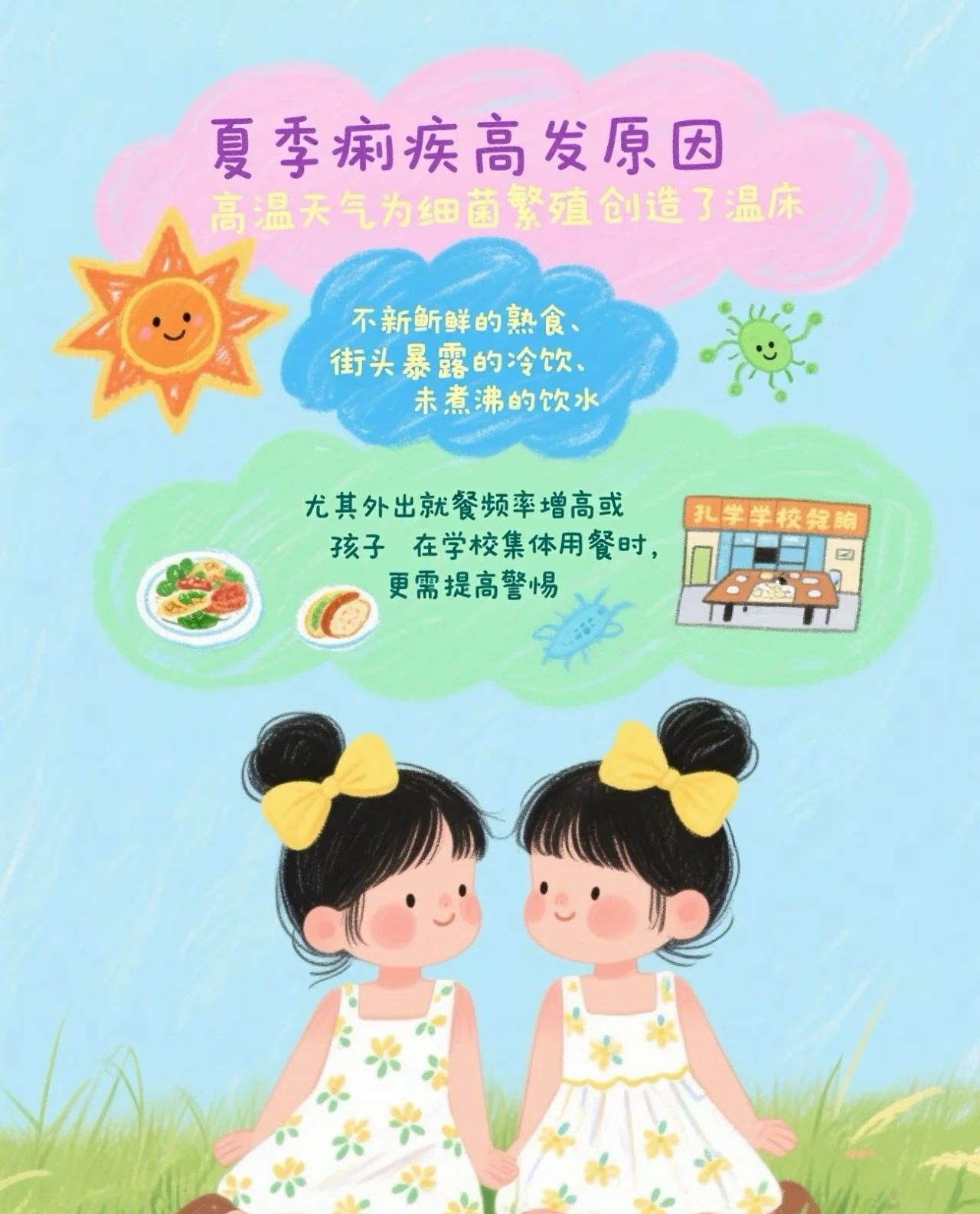 夏季是孩子们尽情玩耍的季节,但高温潮湿的环境也容易滋生各种传染病。为了让孩子度过一个健康、快乐的夏天,我们特别整理了这份**夏季传染病预防指南**,帮助家长做好防护措施!