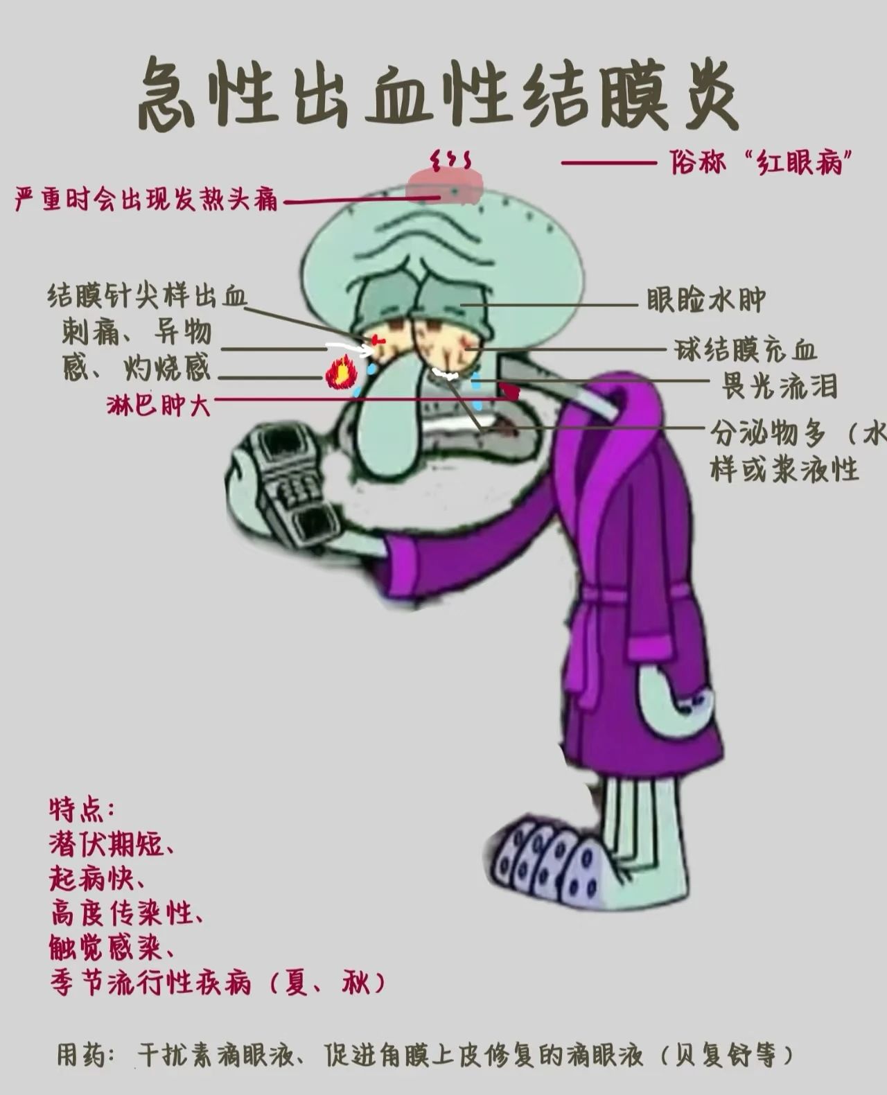 - 预防:不用手揉眼,不共用毛巾/脸盆;游泳后及时用清水冲洗眼睛。