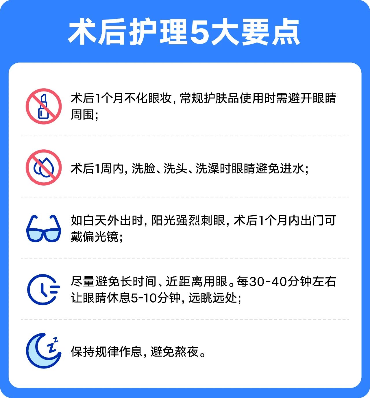 调整生活习惯:术前1周别熬夜、少揉眼,避免感冒发烧;女生避开生理期,减少术后眼部充血风险。
