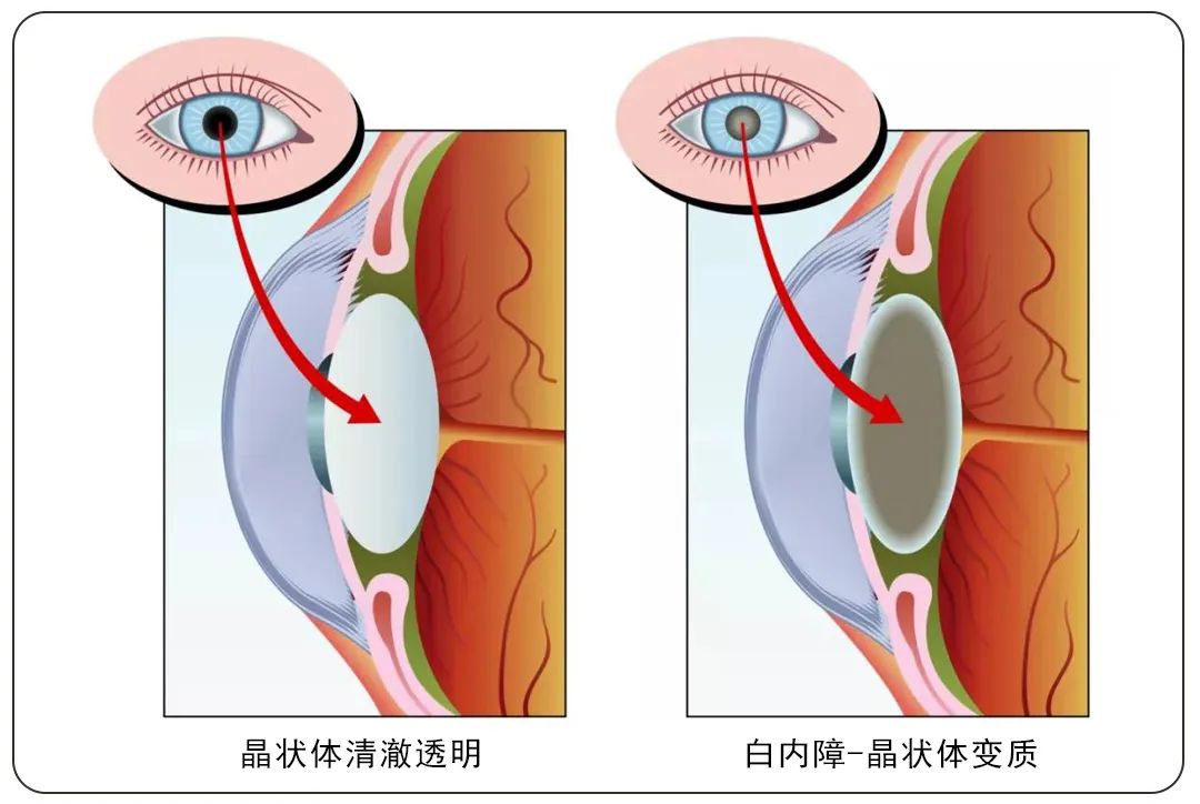 白内障作为一种在老年群体中高发的可致盲眼病,其主要症状是视力减退、视物模糊,由于白内障部位及程度的不同,其对视力的影响也不同,若白内障长在晶状体的周边部,视力可不受影响,若混浊位于晶状体的中央,轻者视力减退,重者视力可能只看见手动或光感。此外还可表现为单眼复视或多视,眼前固定性黑影或视物发暗、畏光等症状,一般情况下,白内障眼无红、痛症状。