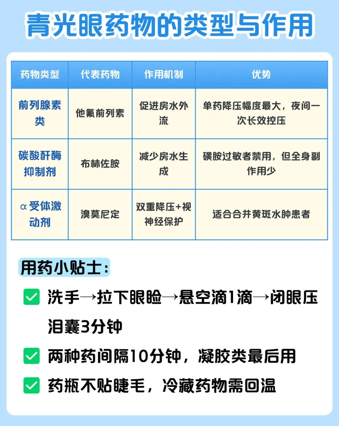 同时使用多种药水:同时使用多种眼药需间隔5-10分钟,避免药物稀释或相互作用。