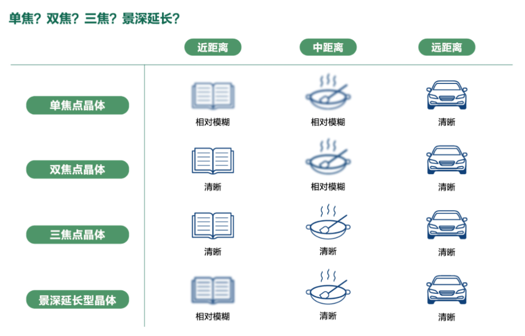 2、明确用眼需求:要清楚自己平时最需要看清哪个距离(远 / 中 / 近),结合自己的用眼需求,才能选择适合的晶体;