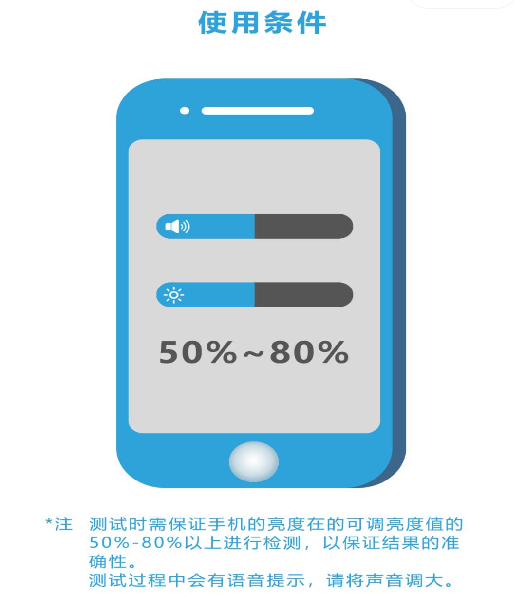 调整手机屏幕亮度值(50%-80%)及声音大小
