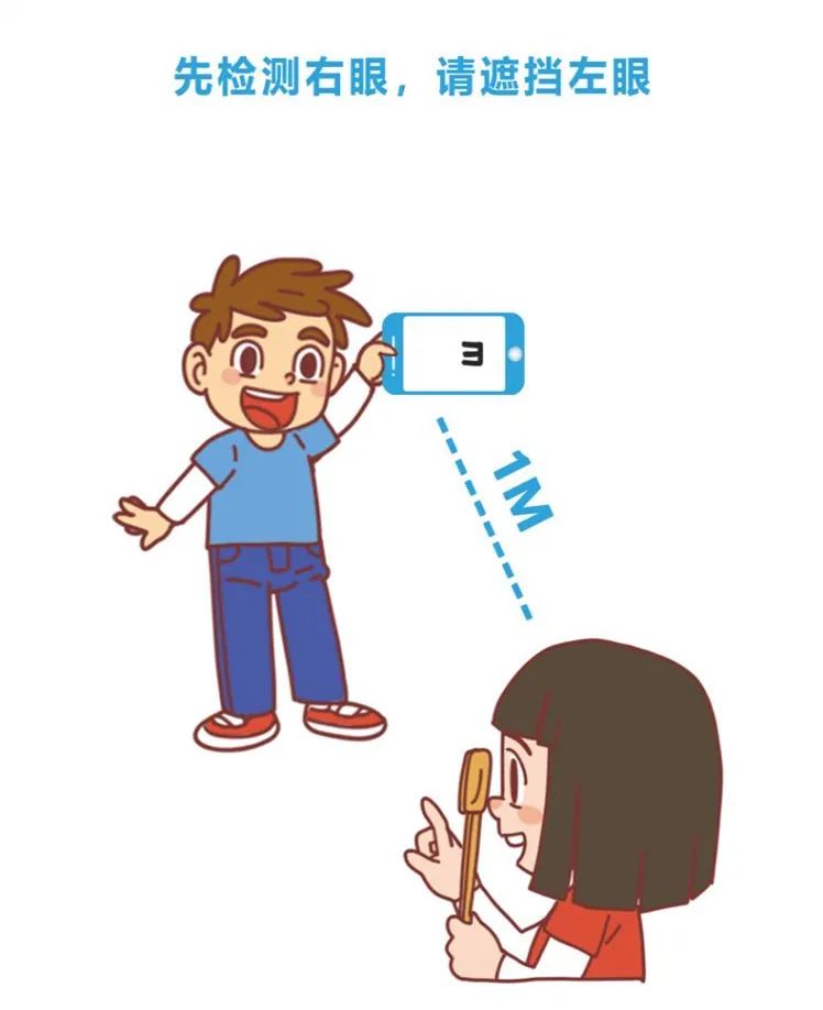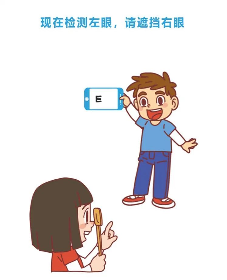 检查开始:孩子先遮挡左眼,