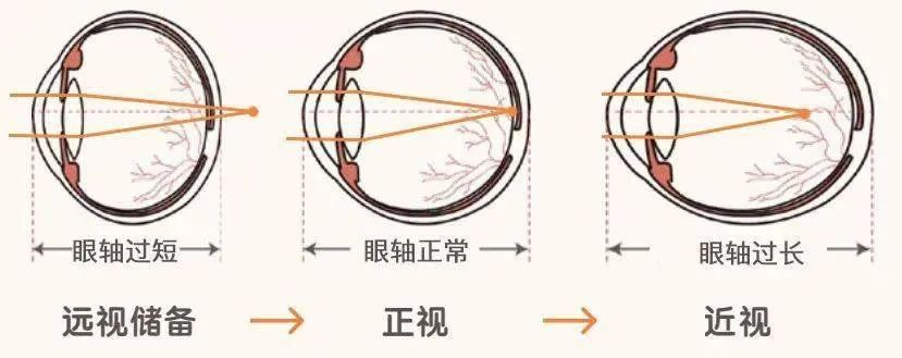 孩子刚生的时候,眼轴只有16mm左右,这意味着婴幼儿普遍存在300度左右的生理性远视。随着孩子的成长发育,眼球增大,视力发育,远视程度会逐渐降低,正常情况下,孩子在学龄前仍然会有200度左右的轻度远视,这就是我们常说的“远视储备”。