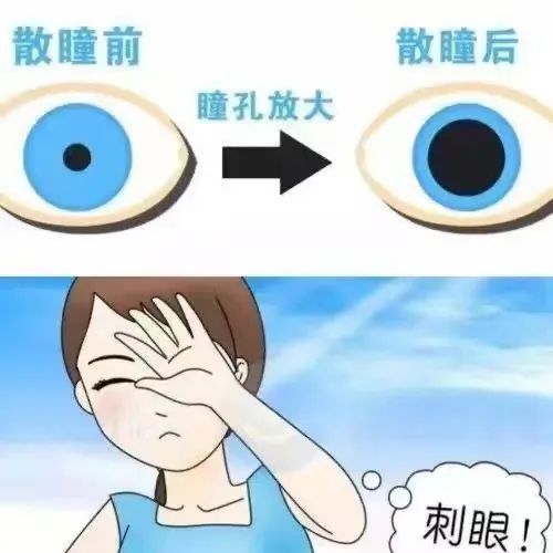 值得注意的是:使用散瞳药物后需要用干净手指或棉签按压眼角约3-5分钟,建议多喝水,利于药物代谢。散瞳期间,由于睫状肌处于一种麻痹的状态,所以要尽量减少或避免近距离用眼。另外,由于瞳孔变大导致畏光,应避免强光刺激。户外活动时,使用遮阳帽或佩戴太阳眼镜。