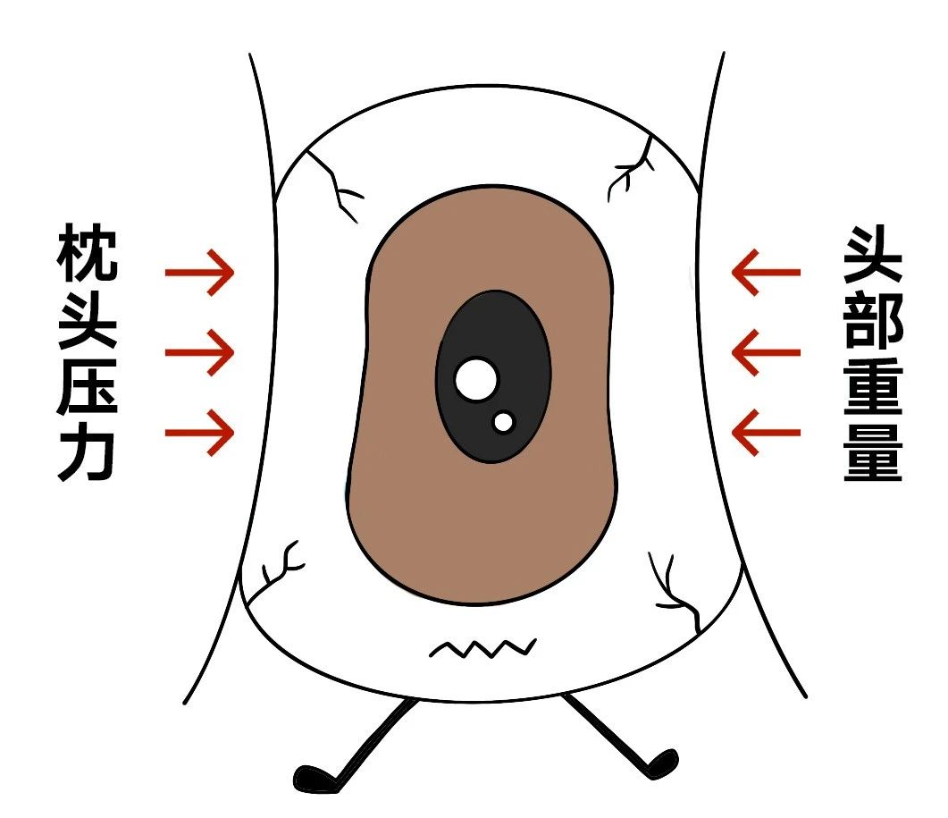 侧躺时,下方眼球被枕头和头部重量压迫,眼内压会瞬间升高,长期压迫可能通过机械性损伤或炎症因子释放,影响小梁网功能,侧卧位可能使下方眼球承受额外压力,局部压迫可能干扰房水循环,长期会导致眼压代偿性升高,埋下青光眼隐患。