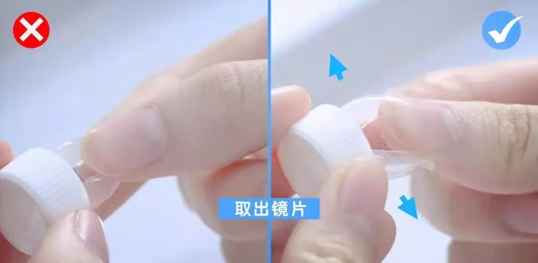 3、取戴碎片:镜片有裂痕,取戴镜未能充分润滑,用力取戴导致碎片。因此,摘镜时可先滴入人工泪液,推动下眼睑带动镜片,等镜片活动之后再用吸棒从镜片边上滑入取出。