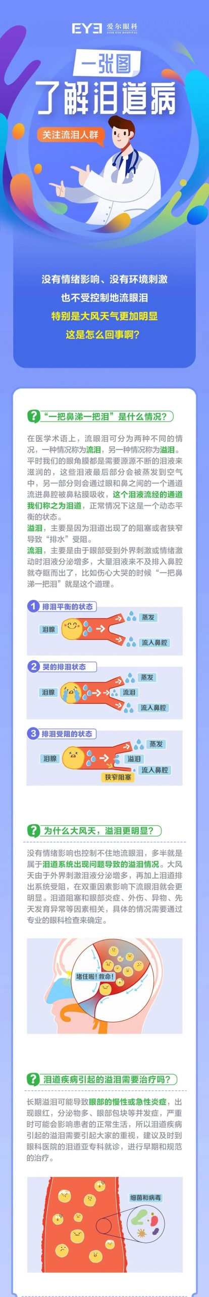 爱尔眼科湘潭地区眼表科刘申文主任提示,任何年龄段的人都有可能会患泪道疾病。目前,对于覆盖全年龄段及各类疑难复杂泪道疾病患者来说,可根据自身情况和医生建议进行如泪点闭锁、泪点狭窄、泪点移位、泪小管狭窄、泪总管狭窄、泪小管阻塞、泪总管阻塞、鼻泪管狭窄、鼻泪管阻塞、外伤性泪小管断裂、慢性泪囊炎、急性泪囊炎、泪道手术后复发等泪道疾病诊疗项目的治疗。