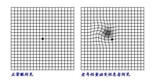 5.如果你看到表格内,线条弯曲变形、中心点模糊,那么该警惕黄斑病变啦!